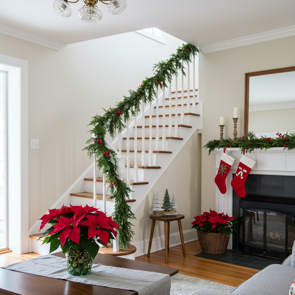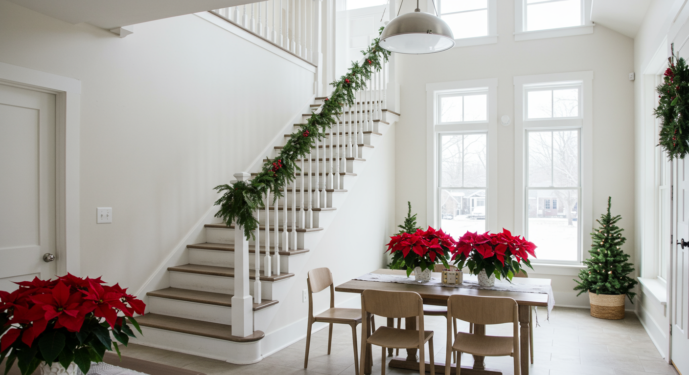 1. Use fresh greenery instead of faux whenever possible. Buyer's love the scent. 2. Highlight a staircase with garland as it accentuates a nice home feature. 3. Red poinsettias make a wonderful bold statement with their color. 4. Less is more - Remove 30% of your tabletop décor to show your holiday displays. |