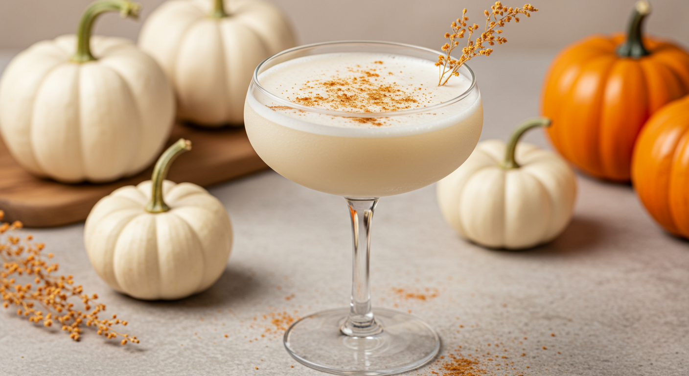 | Pour 1½ oz. white rum and 3 oz. vanilla/almond milk into a shaker with ice and add 1 tsp. of honey syrup. Shake vigorously and pour into a frosted coup glass. Sprinkle with a teeny bit of pumpkin spice. Garnish with a lovely, delicate, wispy flower sprig.